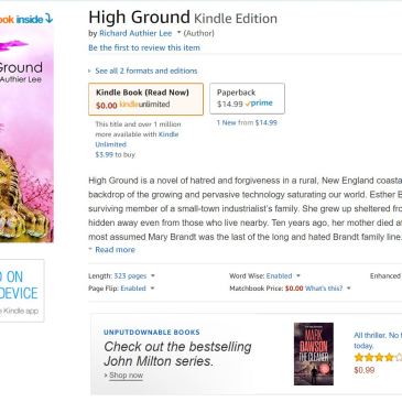 Those who purchase the paperback through Amazon, may also download the eBook at no extra charge. The novel is also part of the Kindle Unlimited program, for those who subscribe.  … More “High Ground” Now Available on Amazon