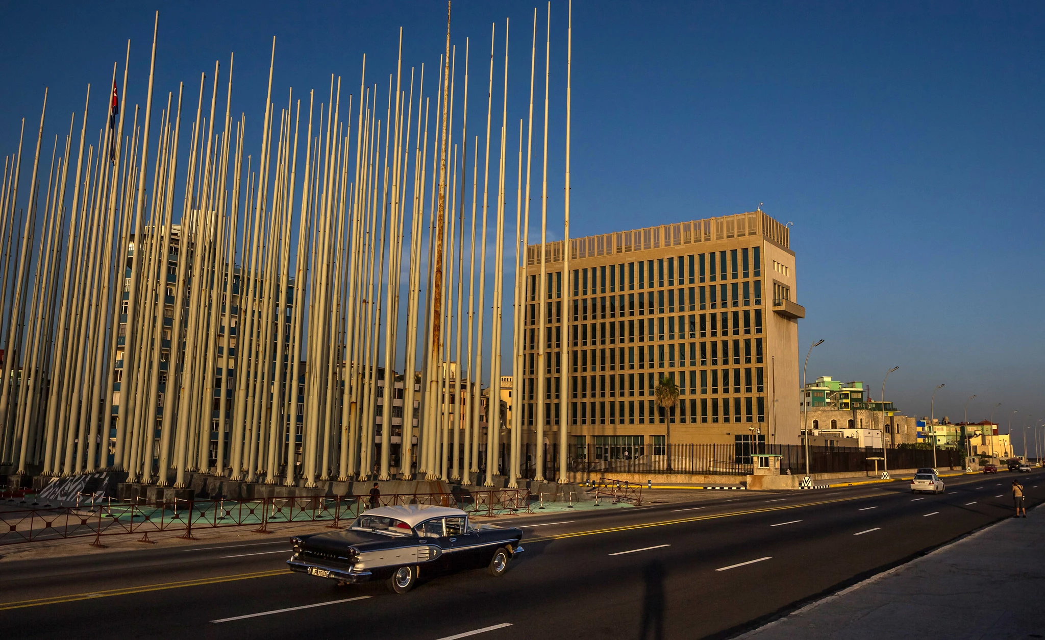 Is it just me, or does this array of tall poles stationed right next to the U.S. Embassy in Havana have an ominous look about it? (Photo: New York Times)