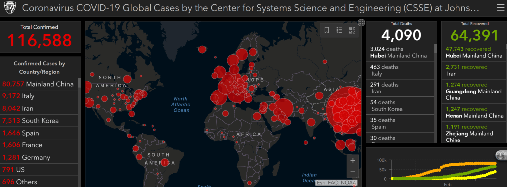 Worldwide Johns Hopkins has reported that so far there have been 116,588 total cases reported with 4,090 deaths.